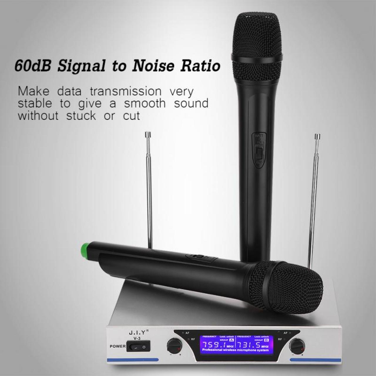 V3 Dual Channels Wireless Microphone Mic System Hi-Fi Sound Wireless Mic System for KTV Silver_EU plug