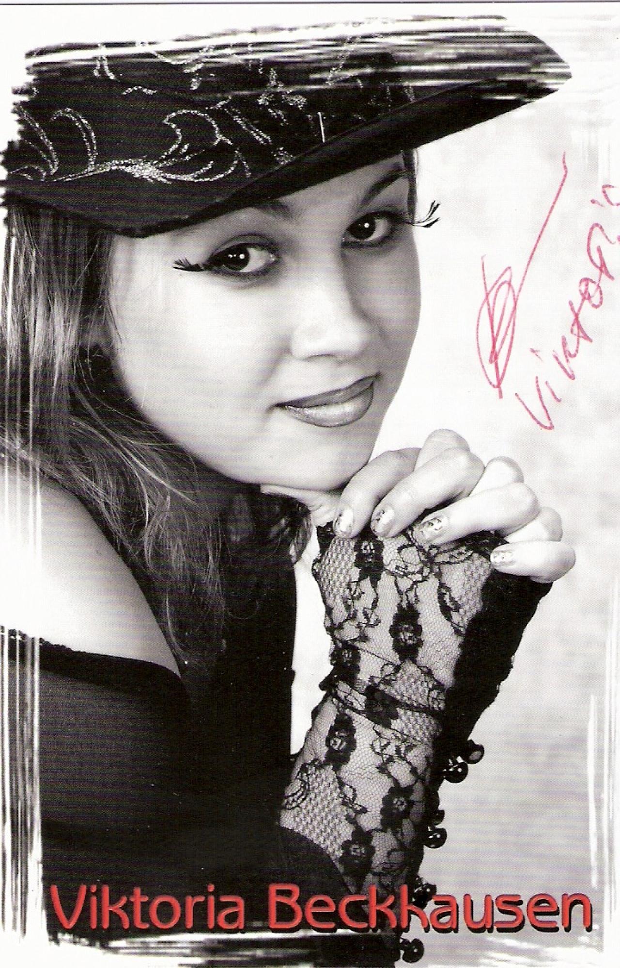 Viktoria Beckhausen Die in Weißrussland (Minsk) geborene Künstlerin (Studium in Gesang, Klavier und Schaupiel), ist eine ausgesprochen starke Persönlichkeit und per formt seit 1999 professionell in ganz Europa bei Auftritten in Shows, in Varietés, Kabarettes, Dinner-Shows, bei Film, Fernsehen - sowie auch auf klassischen Theaterbühnen.
